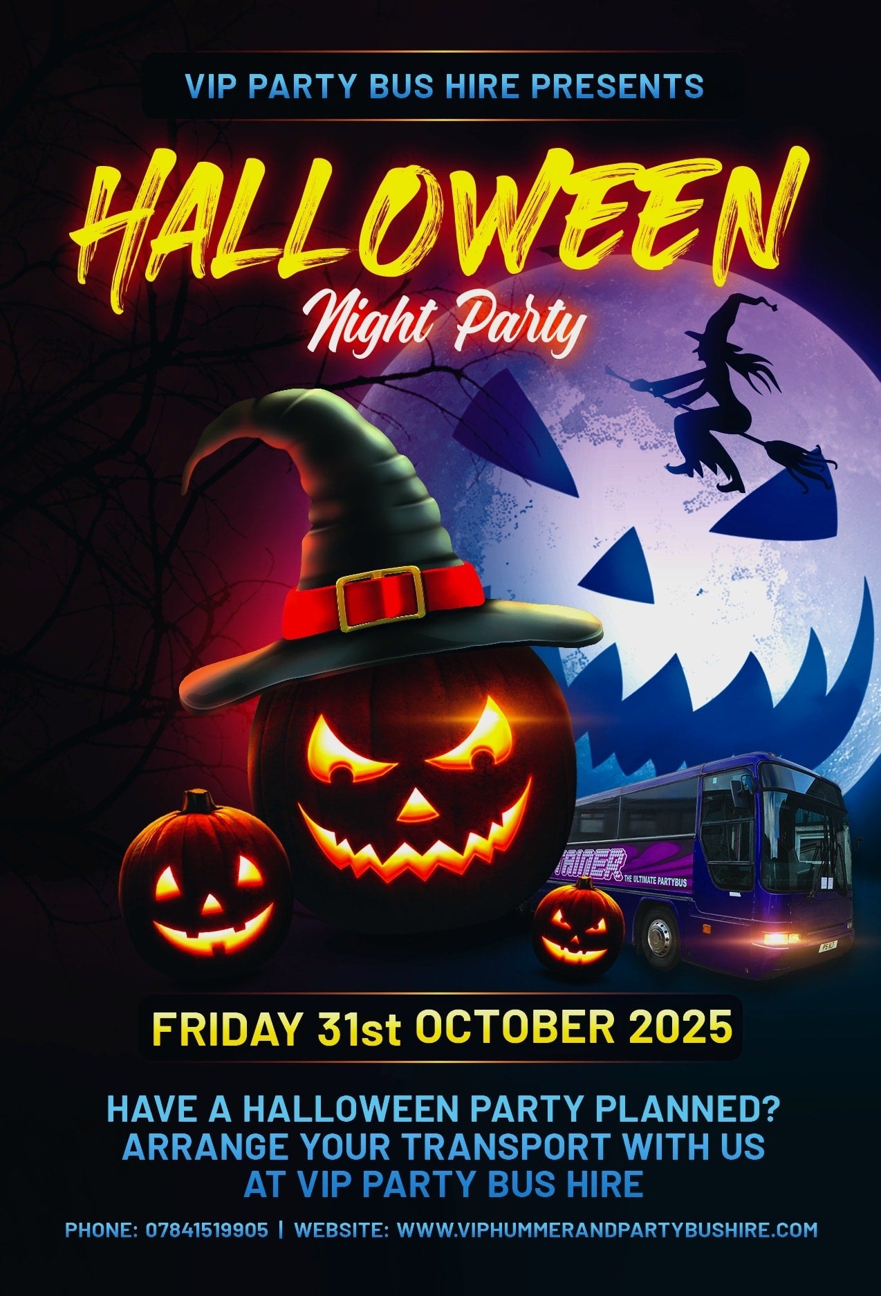 Are you or your friends arranging a party for Halloween? Contact us for transport to and from your party! This year, Halloween night falls on Friday 31st October 2025. We have availability for that night, and the surrounding dates.